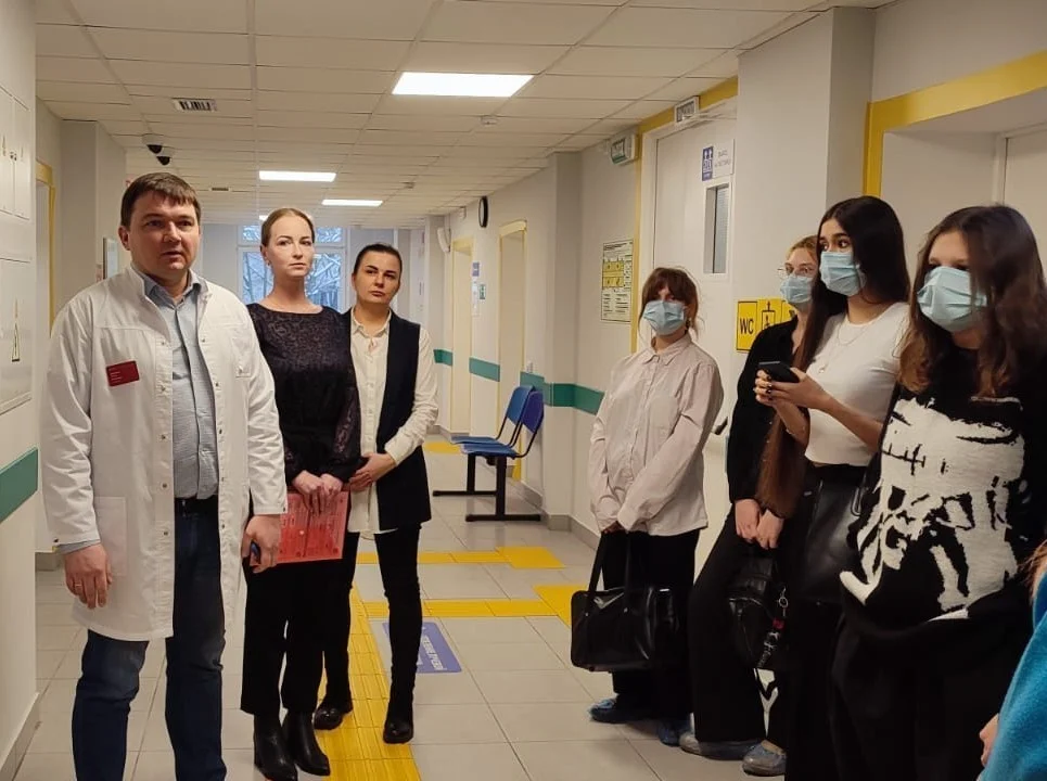 В рамках сотрудничества между медицинскими и общеобразовательными учреждениями региона по профориентации в гости к сотрудникам новой городской поликлиники, открывшейся в прошлом году, пришли ученики 9-11-х классов калининградской школы № 3, которые хотят связать свою жизнь с медициной, всего 17 человек.